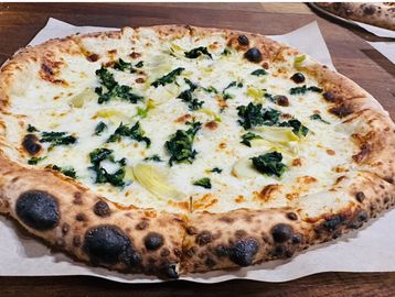 alfredo, mozzarella, chopped spinach, artichoke hearts and shaved parmesan