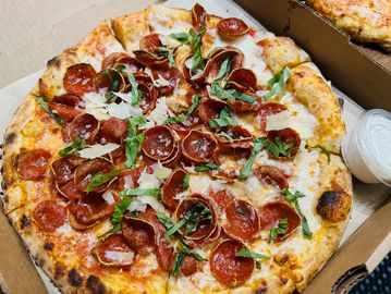 marinara, mozzarella, pepperoni, fresh basil and shaved parmesan